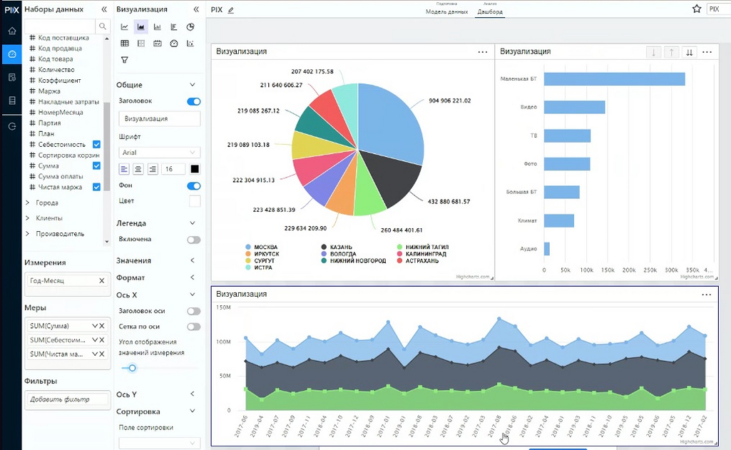 PIX BI — современное аналитическое решение для среднего и крупного бизнеса, позволяющее выстраивать системную работу с данными, формировать интерактивные отчеты и дашборды, а также обеспечивать поддержку управленческих решений на основе актуальной информации.