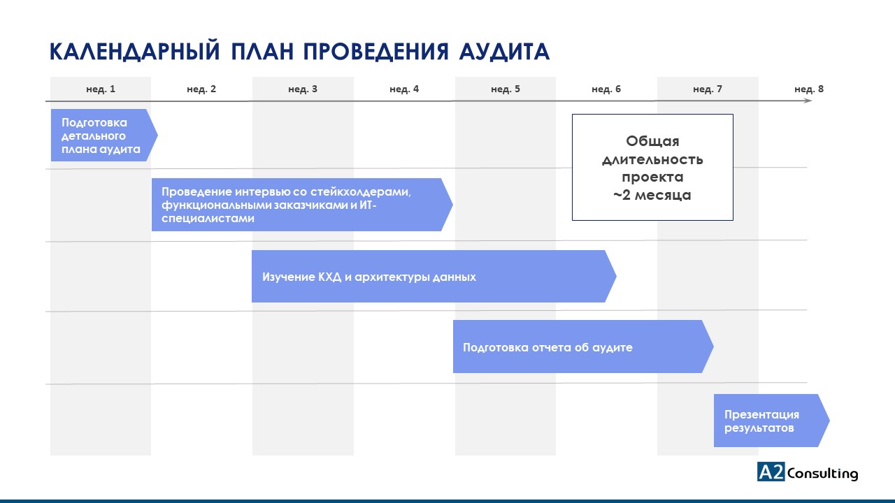 По итогам аудита формируется отчет, включающий:- описание текущего состояния КХД и выявленных проблем,