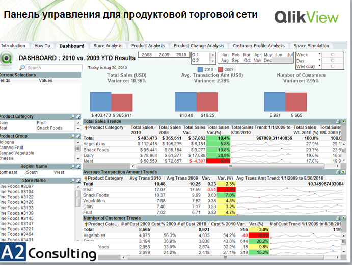 Аналитика продаж в разрезе торговых марок и магазинов.