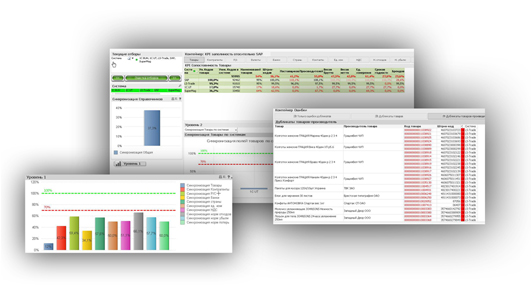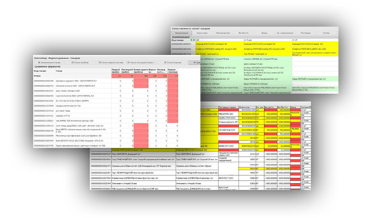 Исходя из разнородности данных и невозможности синхронизации данных во всех системах, было принято решение начинать внедрение аналитики QlikView с приложения «Контроль данных». Основная задача приложения - сопоставление записей из справочников разных информационных систем предприятия с целью приведения их к единообразному виду. В ходе реализации проекта были описаны источники данных и большинство полей, с которыми будут работать будущие аналитические приложения, что сокращает время на написание ТЗ и внедрение последующих приложений. Выбранные поля из разных учетных систем сопоставляются, что позволяет однозначно и быстро отслеживать некорректные данные, находить дубликаты позиций, проверять соответствие данных правилам ведения справочников. Например, вес Брутто должен быть меньше веса Нетто, или штрих-код должен быть 12 символов, или в наименование товара должны отсутствовать спецсимволы.
